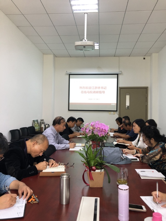 9月25日下午,校党委书记江彦桥对我校马克思主义学院进行本学期工作调研。马院全体教师参加会议。会上宋艳华院长代表马院,从教学科研、队伍建设及行政等几个方面系统介绍了马院本学期的工作重点,汇报了马院编制“十四五规划”的思路,并说明了学院存在的问题及困难。江彦桥书记认真听取了宋艳华的汇报,他对马院存在的困难和提出的建议做了笔记列出清单,并表示要协同校有关部门和领导一同协商、推进马院工作。他对马院自成立以来在教师队伍建设、教学改革等方面的工作进展充分给予肯定,对“新时代雷锋精神研究中心”扎实推进研究、对学院将抗击疫情精神有效融入思政课教学等做法表示赞赏。同时,他语重心长的对马院全体教师提出了3点要求:一是在总书记“六要、八统一”的要求基础上,要加强自身思想政治教育,不要触碰底线和红线;二是在科研工作中,马院教师要善于总结和分析,从小项目开始,为做大的项目有计划的进行准备,使学院的科研工作长期、持续、健康的发展;三是要求马院要积极配合和支撑学校课程思政工作,不仅局限在对课程的课程思政建设,要进一步考虑做专业的课程思政的系统性建设工作。江书记表示要经常深入课堂听课,了解思政课的教学情况。