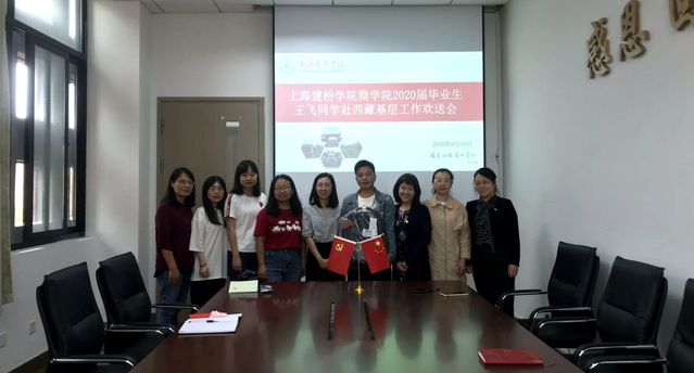 9月18日,商学院2020届毕业生赴西藏基层工作的行前欢送会在商学院三楼333会议室举行。学院党委书记刘爱香,副院长周英芬、尹卫华,副书记王晨岑,年级组长以及2020年西藏专招计划王飞同学。会议由王晨岑主持。会上,王晨岑副书记首先介绍了学院2020年西藏专招工作开展情况以及入选专招计划王飞同学的基本情况。随后,王飞同学进行发言。他首先对母校的培养,学校领导、老师的关心表示感谢。并表示在西部志愿服务期间,定能脚踏实地,认真做好基层的每一份工作,充分展示建桥学子的优秀形象,为祖国的发展贡献出自己的一份力量。刘爱香书记根据自己相关经历入手,对王飞同学提出了相关的建议,希望王飞要在以后的工作中认真总结在学校的成功经验与教训,把这些经验和教训运用到以后的学习和工作中;走上工作岗位要继续学习,做好技能储备。同时表达了对学生的关心,并强调学院始终是每一个校友的家。辅导员叶媛媛对王飞表示了祝贺,并勉励要勇敢面对挑战,在工作岗位上继续保持吃苦耐劳的精神,保持初心,勇敢迈进,取得更好成绩。最后,商学院领导为王飞同学发放纪念品,代表学院对王飞同学表示祝贺和慰问。随着阵阵掌声的响起,所有的感恩与留恋、祝福与期