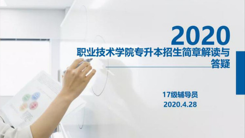 为助力我院学子专升本,学院持续发力,为学子提供更好的指导与服务。4月28日下午,职业技术学院2017级辅导员通过在线平台召开2020年“专升本”报考答疑主题班会,分团委书记、毕业班辅导员赵君主讲,张曼、杨俊情、陆融、刘梦影等其他毕业班辅导员与会答疑。赵君老师首先带领大家认真解读上海市教委“专升本”招生文件,重点学习了报考条件以及报名方法,提醒同学们注意报考的时间节点,并认真研读了专升本网上报名系统操作手册。针对报考本校专升本的同学,赵君老师带领大家分析了学校2020年专升本招生章程,罗列出相较于去年招生计划发生的变化以及面试条件的变化,并带领大家浏览学校发布的2020年招生面笔试面试申请办法。赵君老师还就各阶段所需完成事项的时间节点给大家拟了一个时间线。会上,同学们提出了许多关于返校、住宿、证书、报考条件等相关问题。赵君及张曼、杨俊情、陆融、刘梦影等毕业班辅导员针对大家提出的问题一一做出了解答。