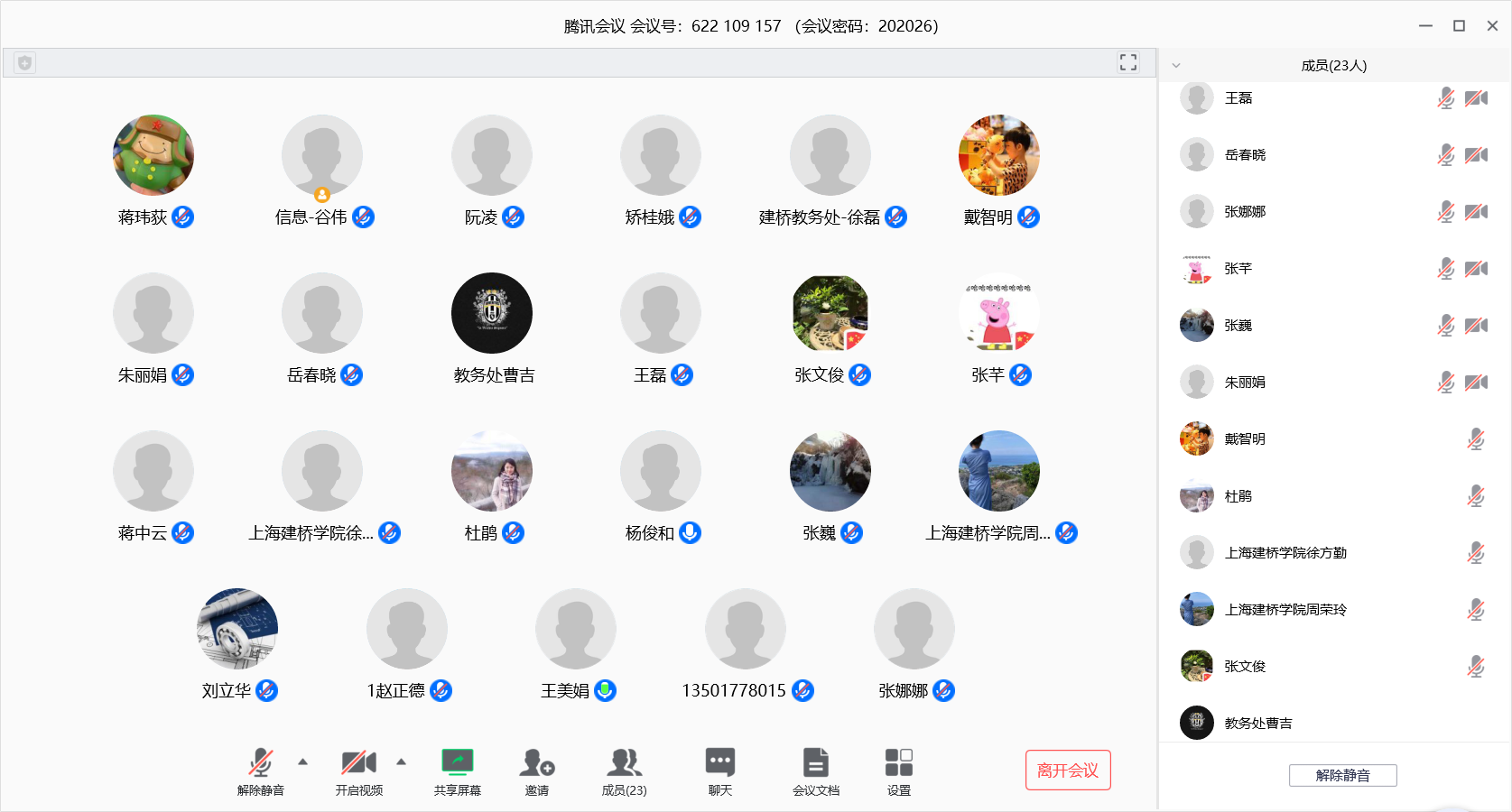 2月26日下午,由学院领导班子、各系、部主任、督导组长、教学秘书组成的外国语学院教学保障小组通过腾讯会议网络方式召开疫情防控期间教学实施方案沟通会。教学校长杨俊和、教务处处长徐方勤、副处长周荣玲、刘立华,教务处曹吉老师参加会议,会议由学院院长毛立群主持。教学院长王海燕汇报了学院在疫情防控期间线上教学的基本实施方案,本学期68门课程,58门课程采用线上教学方式,线上教学课程的前期准备工作基本完成,各类课程线上教学采用“平台”+“微信互动”或“钉钉”等沟通群模式开展线上授课、线上学习、沟通答疑等教学活动,保证疫情防控期间教学进度。书记江萍强调,在特殊时期,坚持“疫情下教学与课堂思政相结合”,确保沟通群的教师和学生的高昂精神状态与信息正能量传递,采取辅导员进入班级教学沟通群,监督和维护疫情防控期间沟通群内学生情况,有问题及时反馈学院,建立家长与辅导员齐抓共管等方式。四位主任也对线上教学准备工作进行了汇报,同时提出在准备工作中出现的一些问题,大英部兼职教师人数多,老教师使用教学平台不熟练,对网络化教学手段有难度,公共课程班级多,线上教学怎么把控质量,日语系日语会话课程线上怎么开展才更有效,英语