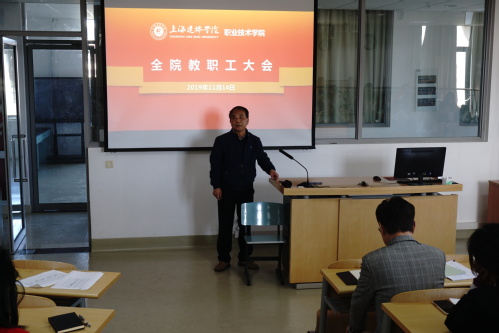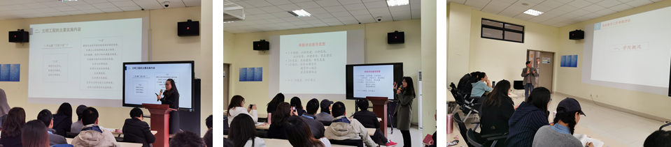 为广泛动员和全面部署学校本科教学审核评估工作,11月21日下午外国语学院召开全院教职工大会,传达部署本科审核评估重要意义、评估程序和重点落实工作内容。会上,毛立群院长分别从“学院概况”、“学院办学思路”、“师资队伍”、“专业建设”、“人才培养中心地位与体现”、“办学特色”及“今后努力方向”等方面,对学院本科教学工作审核评估报告进行了汇报。江萍书记作了关于“崇尚文明礼仪、共创文明校园”为主题的报告,结合日常工作及巡查时发现的情况,分别从为什么要开展文明工程建设及文明工程的主要实施内容两个方面展开讲述,并且对所有教职工提出了相关的要求,尤其着重指出课堂纪律,学生落实“三礼十无”,强调“文明工程”的建立是为了让建桥学子遇见更好的自己,用更好的自己去迎接审核评估,成就未来的自己。最后王海燕副院长从本科审核评估工作1个坚持(以评促建、以评促改、以评促管、评建结合、重在建设)、2个突出(内涵建设、特色发展)和3个强化(办学合理定位、教学中心地位、质量保障体系)全面部署安排学院本科评估迎接工作,号召全院教职工积极配合专家进校听看课、座谈、走访、随机交流等考察工作,以最饱满精神的状态迎接审核评估。