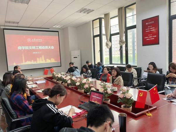 11月7日下午,商学院召开文明工程动员大会,全体教职工参加会议,会议由党总支书记刘爱香主持。会议伊始,全体与会人员共同观看了“三礼十无”宣传片。宣传片简要介绍了“三礼十无”的内涵和实施意义,严守“三礼十无”,学以固本、学以立德、学以慎行,以良好精神风貌迎接建校20周年。接着,刘爱香书记向教职工传达了学校新一轮文明工程推进会议的工作部署计划,并详细介绍了学校关于深入开展校园文明工程的实施方案。她表示,我校曾连续十四年获“上海市文明单位”,并两次获“全国文明单位”等荣誉,校园文明工程建设的工作是一项长久性、持续性的系统工程。针对文明工程建设刘书记向全体教职工提出了三点要求:一是对院领导和教辅人员的要求,要落实学院教风学风巡查任务,认真履行文明创建监督检查职责;二是对专兼职教师遵守课堂规范的要求,要严格遵守高校教师“十大行为准则”,要求学生起立行注目礼,务必课前做一次“文明创建”主题教育,强调上课时不带早餐进教室、手机入袋、不随意进出教室、不睡觉、不扔垃圾等规定;三是对辅导员老师的要求,召开“文明创建”主题班会,加强对学生的正确引导。最后,她希望全体教职工以文明工程的创建活动提升商学院教风学