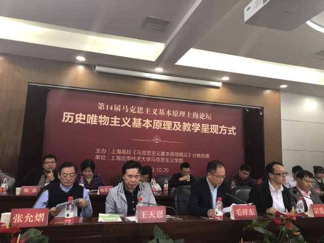 2019年10月26日,马克思主义学院副院长荆筱槐参加了上海高校《马克思主义基本原理概论》分教执委在上海应用技术大学举办的第14届马克思主义基本原理上海论坛“历史唯物主义基本原理及教学呈现方式”研讨会。会上,上海财经大学鲁品越教授和复旦大学马拥军教授分别就历史唯物主义理论如何在课堂讲授等问题进行了主旨报告。其中鲁品越教授提到,如何将理论以具体化方式呈现,通过讲授理论形成的过程化,用真理魅力影响学生,用生动的故事吸引学生,用满腔热情感染学生。10几位专家同行在研讨会上进行了交流发言,给马克思主义基本原理课程教学很大启示,受益匪浅。通过研讨会的交流,我们不仅深入理解了马克思主义历史唯物主义基本原理,而且学到了特别的教学方法,引发了我们提升马克思主义基本原理课程教学质量的诸多思考。