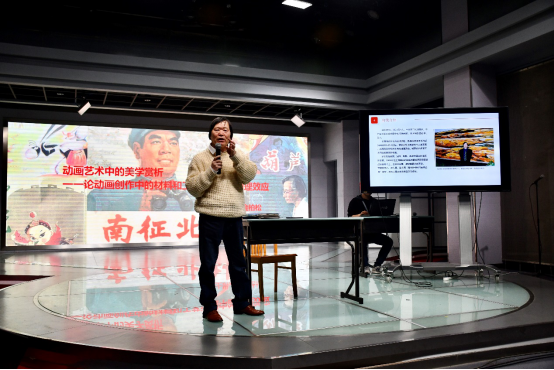 (金柏松老师)你知道动画电影有哪些类型吗?你知道不同的材料与工艺会对动画创作产生哪些影响吗?这些问题都可以在专题讲座《动画艺术中的美学赏析——论动画创作中的材料和工艺过程中的物理效应》中找到答案。本次讲座于2019年10月24日下午在新闻传播学院举行,主讲嘉宾是著名画家金柏松老师。动画是一门特殊的影视艺术,讲座一开始,金老师便向大家介绍,根据动画创作中的材料和工艺过程,可将动画电影分为三种艺术类型:即动画、剪纸与木偶,他以30多部动画片为例,讲述了动画艺术的特殊性和制作本质,揭示了动画片中物理效应的美学命题。金柏松老师以《大闹天宫》《哪咤闹海》《天书奇谭》《金猴降妖》等作品,讲述了传统动画片的制作原理和优劣之势;以《小蝌蚪找妈妈》《山水情》《牧笛》等经典水墨动画作品为例,详细讲述了他与水墨动画《山水情》之间不可磨灭的情怀,讲述了作品通过水墨画的创意叙事,革新了以线条和填色为主的传统动画片的表达形式,产生了至今无人超越的艺术效果和感人魅力,蕴意幽远。接着,金柏松老师介绍了以剪纸为动画表达形式的《火童》《猪八戒吃西瓜》《金色海螺》《葫芦兄弟》等作品,分析了利用剪纸这一特殊技术,所实现的装饰