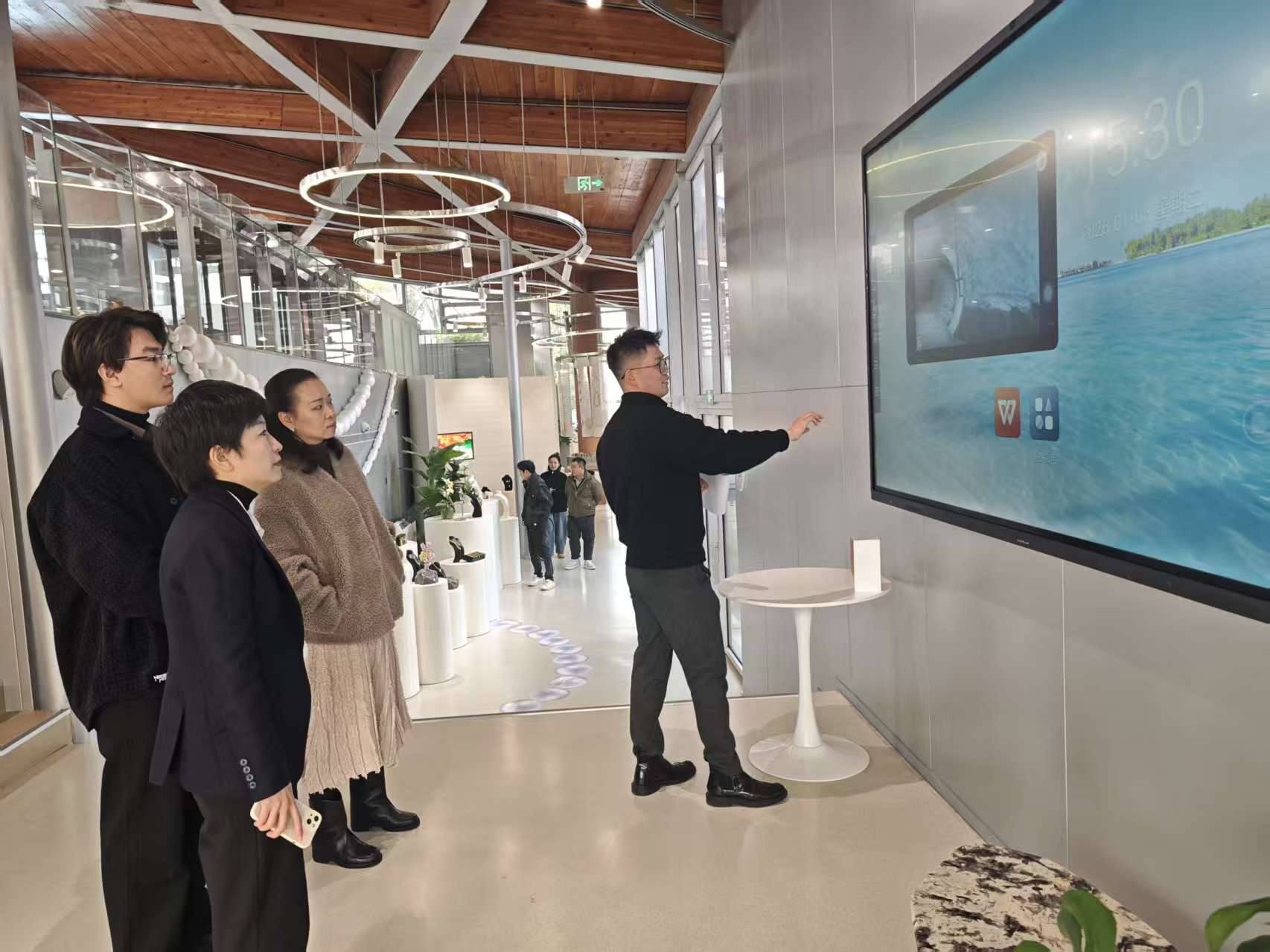 2026年1月6日上海东浩国际商务有限公司代表来访珠宝学院,珠宝学院朱玉院长、教师赵靖娜、王潮等参与会谈。双方就中国文化出海、非遗技艺与首饰泛衍生产品的生产及市场推广等方面进行初步合作洽谈。公司代表提出了中国传统文化与非遗首饰及衍生产品的市场潜力,计划以花丝、大漆等非遗技术开发产品。并表示集团已建立国内外多方销售体系,但目前需解决产品的供应链及设计短板,拟通过校企合作提升产品文化叙事能力。朱玉院长介绍了学院概况以及我院的珠宝艺术产品设计能力与产教融合方面的实践。并表示我院师生团队具备直接对接市场需求和成熟产品方案落地的能力。学院展示多个成熟设计案例,涵盖传统木质元素、二十四节气文化及文化书房等主题的融合首饰产品方案。双方初步探讨了之后的可能的合作模式,包括产品设计、相关工艺技术制作及渠道资源整合等。旨在推动珠宝艺术领域的“产学研商”协同发展的新思路。后续双方共同前往参观建桥珠宝艺术中心,并对校企合作,“产学研商”等新模式的合作在可行性细节与落地进行进一步交流。