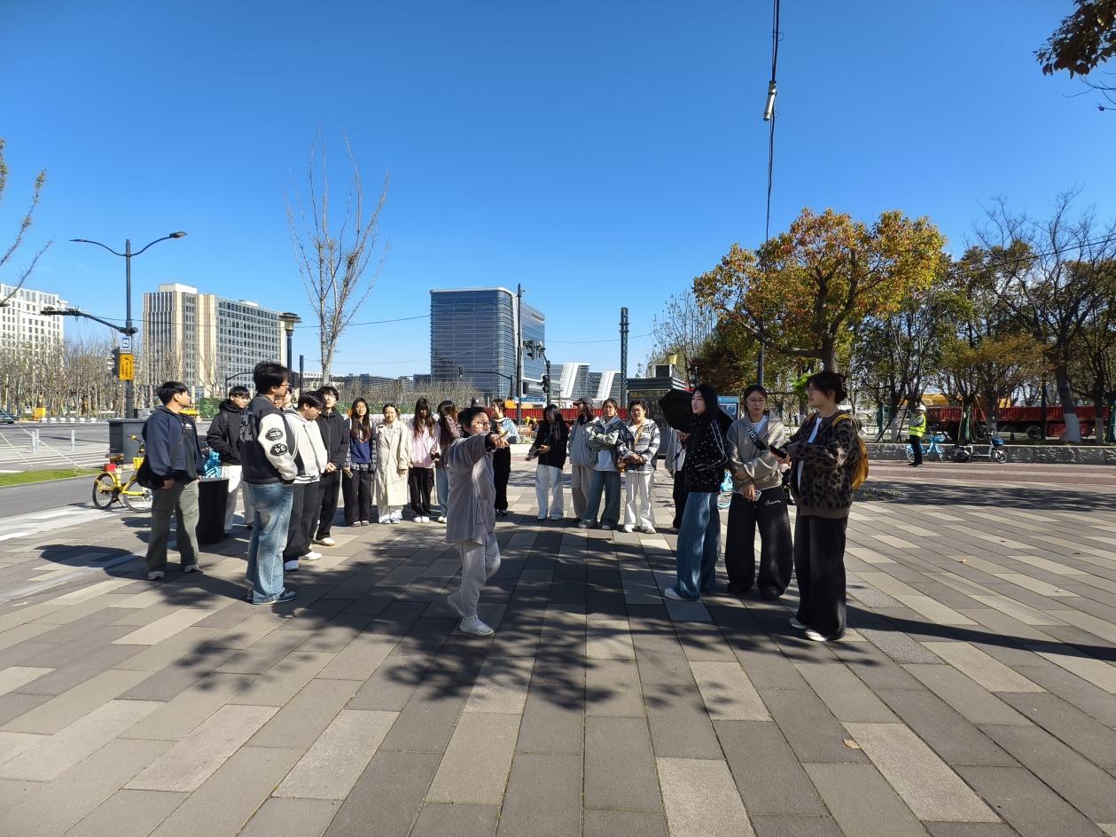 为深化上海市级重点课程《滨水景观设计》教学成效,将理论知识与实践应用深度融合,切实提升学生的景观设计实操能力与现场研判水平,2026年4月,上海建桥学院艺术设计学院组织相关专业师生,赴滴水湖名家主题雕塑公园、滴水湖儿童郊野公园开展专项实地调研活动,让课堂走出教室,让知识扎根现场。作为上海市级重点课程,《滨水景观设计》依托学校应用型人才培养理念,注重实践教学环节,此次调研精心选址滴水湖两大特色公园,聚焦滨水景观核心设计要素,助力学生将课本理论转化为设计实践能力。调研前,课程教师团队结合《城镇滨水景观工程技术规程》相关要求,明确调研重点的同时,提前梳理了两大公园的景观特色与设计亮点,为调研活动的有序开展做好充分准备。调研现场,蔡燕婕老师带领学生开展全方位现场勘探,围绕地形、植物、驳岸设计、互动小品、观景台、步行系统六大核心内容,进行细致讲解与深度剖析。在滴水湖名家主题雕塑公园,教师结合园内100件名家雕塑作品,重点讲解了滨水空间中人文景观与自然景观的融合技巧,引导学生观察地形起伏与滨水视野的呼应关系,分析步行系统如何串联雕塑节点与观景平台,同时详解了驳岸设计如何兼顾生态保护与景观美学,以及
