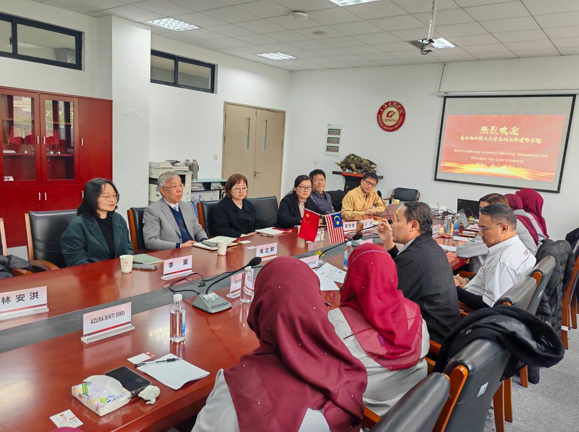 2026年1月6日下午,上海建桥学院外语与国际教育学院与马来西亚理工大学(UTM)语言中心交流研讨会在外教院229会议室顺利举行。会议由外语与国际教育学院毛立群院长主持,学院党委书记王晨岑、AI背景下外语T型人才培养研究中心教师代表、大学外语部孔辉主任、马来西亚理工大学语言中心ABDUL RAHIM博士等14名教师代表共同出席,双方就语言教学模式、AI技术应用、学生培养及国际合作前景等议题展开深入探讨。会议伊始,毛立群院长向马方代表团介绍了学院的发展历程、三院合并后的资源整合成果、重点专业布局及未来发展规划。马来西亚理工大学RAHIM博士概述了UTM作为综合性研究型大学的办学特色,着重强调了学校毗邻新加坡的区位优势与庞大的国际学生规模,尤其是中国硕博生的高占比。在交流环节,双方聚焦于语言教学中的差异化实践与挑战,进行了深入探讨交流。中方教师分享了可持续发展研究中心的教学理念,强调课程与社会实践的自然衔接;马方则展示了AI技术在语言教学中的创新应用,如通过“Online Pen Pal”等工具为内向学生提供口语练习支持,同时注重引导学生批判性使用AI生成内容,避免过度依赖。针对学生能力差