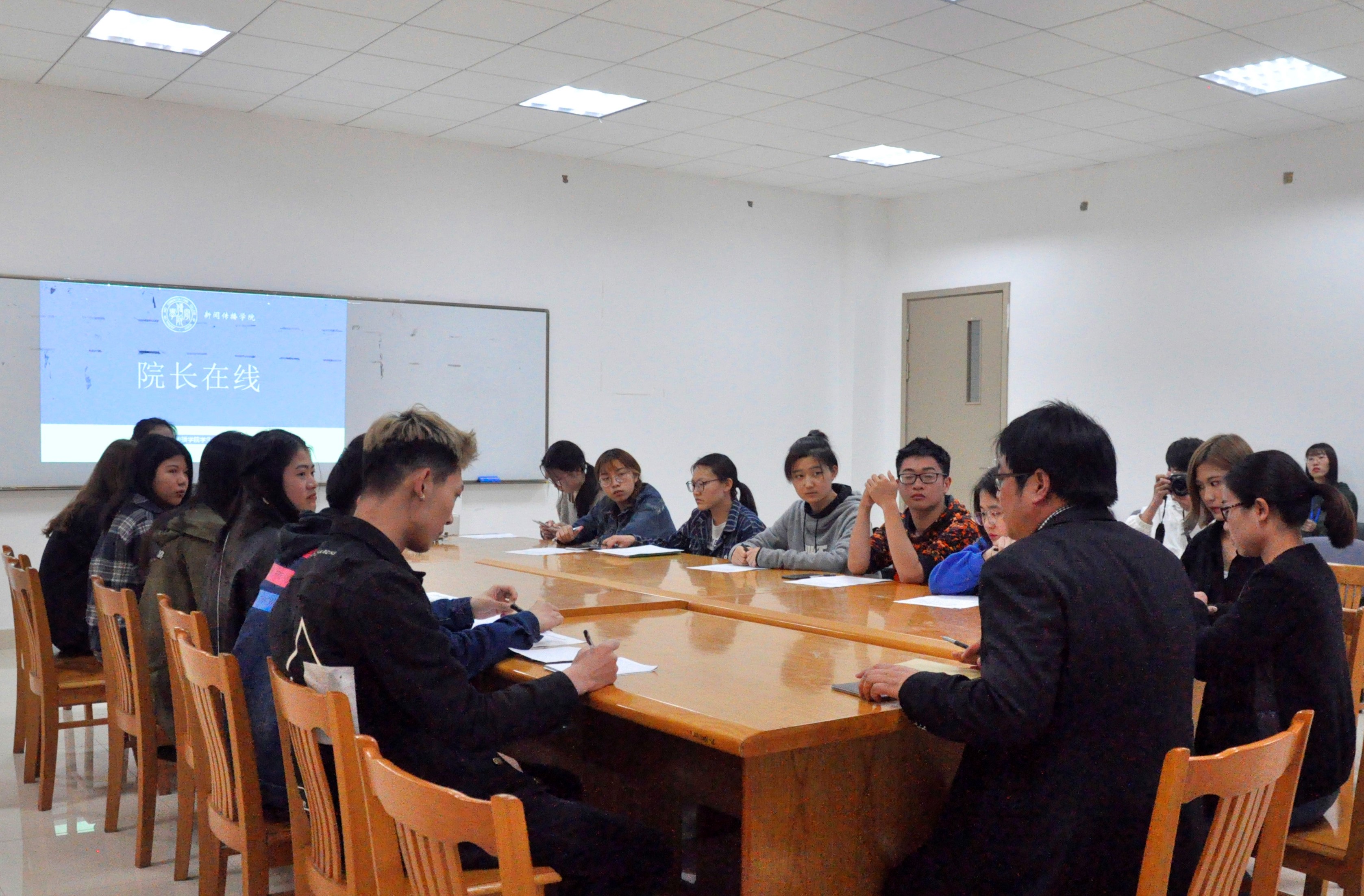 4月25日,新闻传播学院第一次院长在线活动在学院楼225室举行,新闻传播学院院长冯修文与17级各专业学生代表参加。