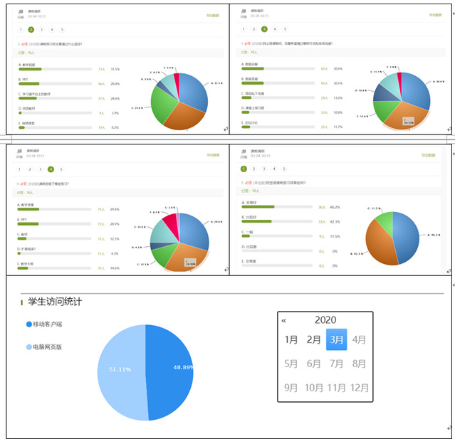 1、通过平台强大的后台统计功能,及时掌握学生的学习动态,做到有针对性的点对点的提示、辅导、督促、答疑等。