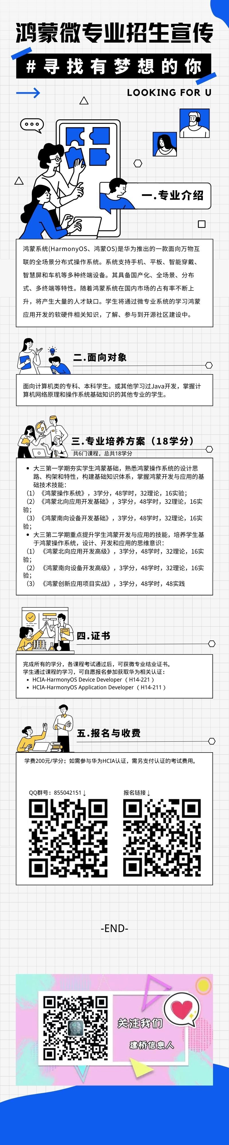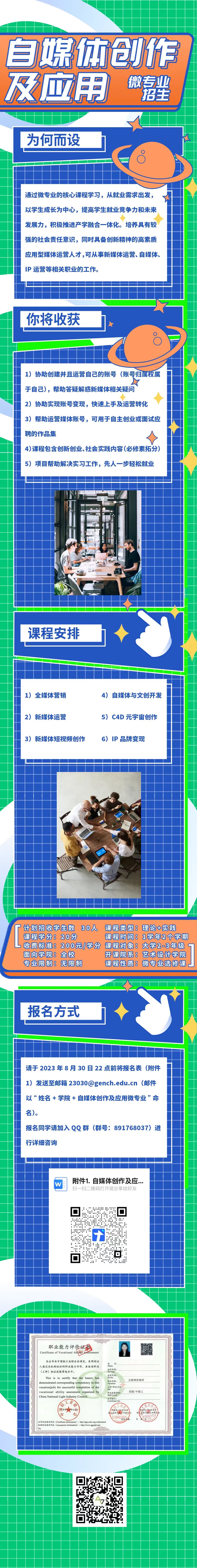 为全面推进“四新”专业建设,落实立德树人根本任务,积极对接产业转型升级,主动适应地方经济发展需求,我校于2023年依托各一流本科专业,整合现有教学资源,构建一批适合多个专业学生学习的微专业,根据《上海建桥学院微专业建设实施方案(试行)》(沪建桥院教〔2023〕12号)的要求,现开展2023年各微专业报名工作。