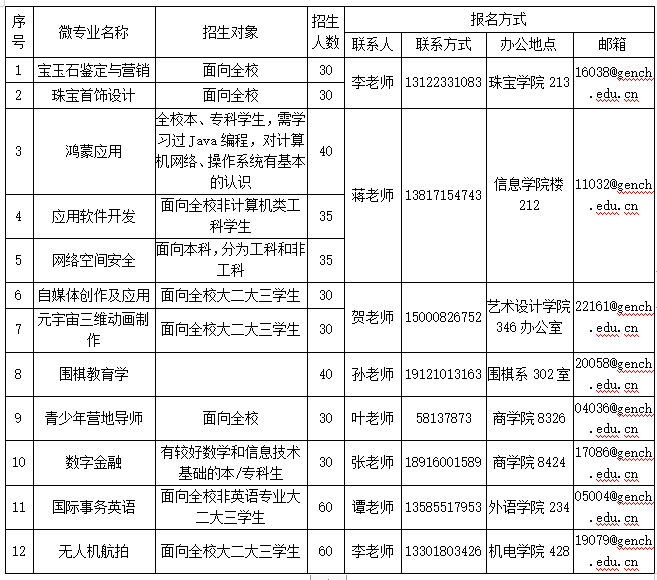 报名过程中有任何问题,请学生通过上表联系各微专业。
