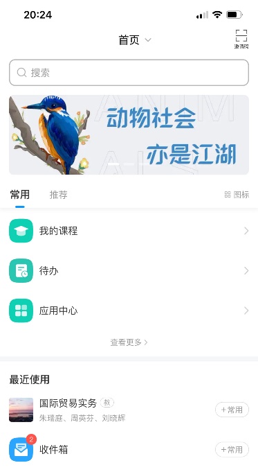 1.打开“学习通”APP,“首页”菜单项点击右上角“邀请码”图标。