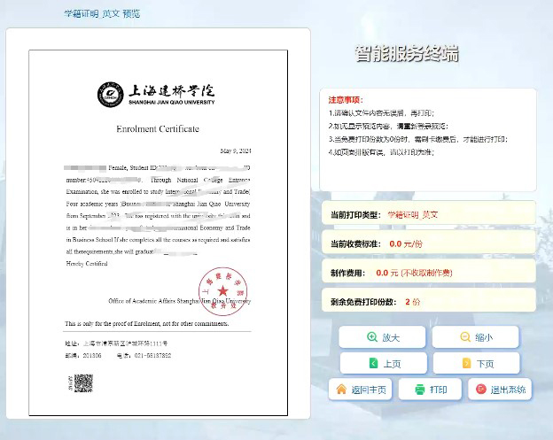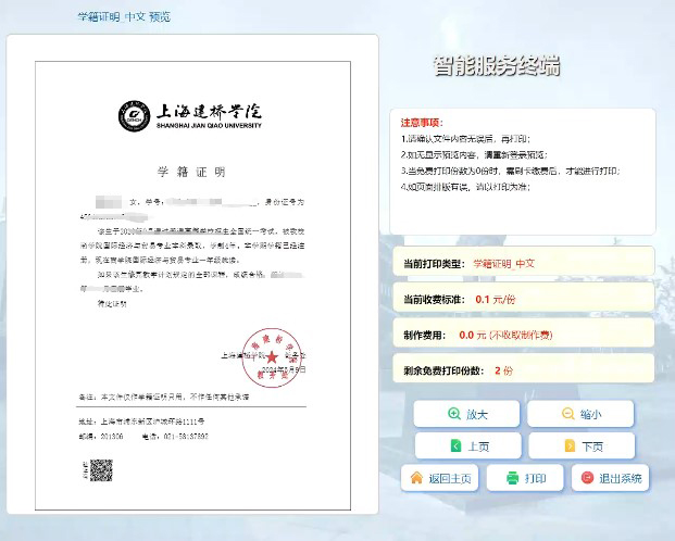 休学证明(中文) | - | 免费2份,超出5元/份 |