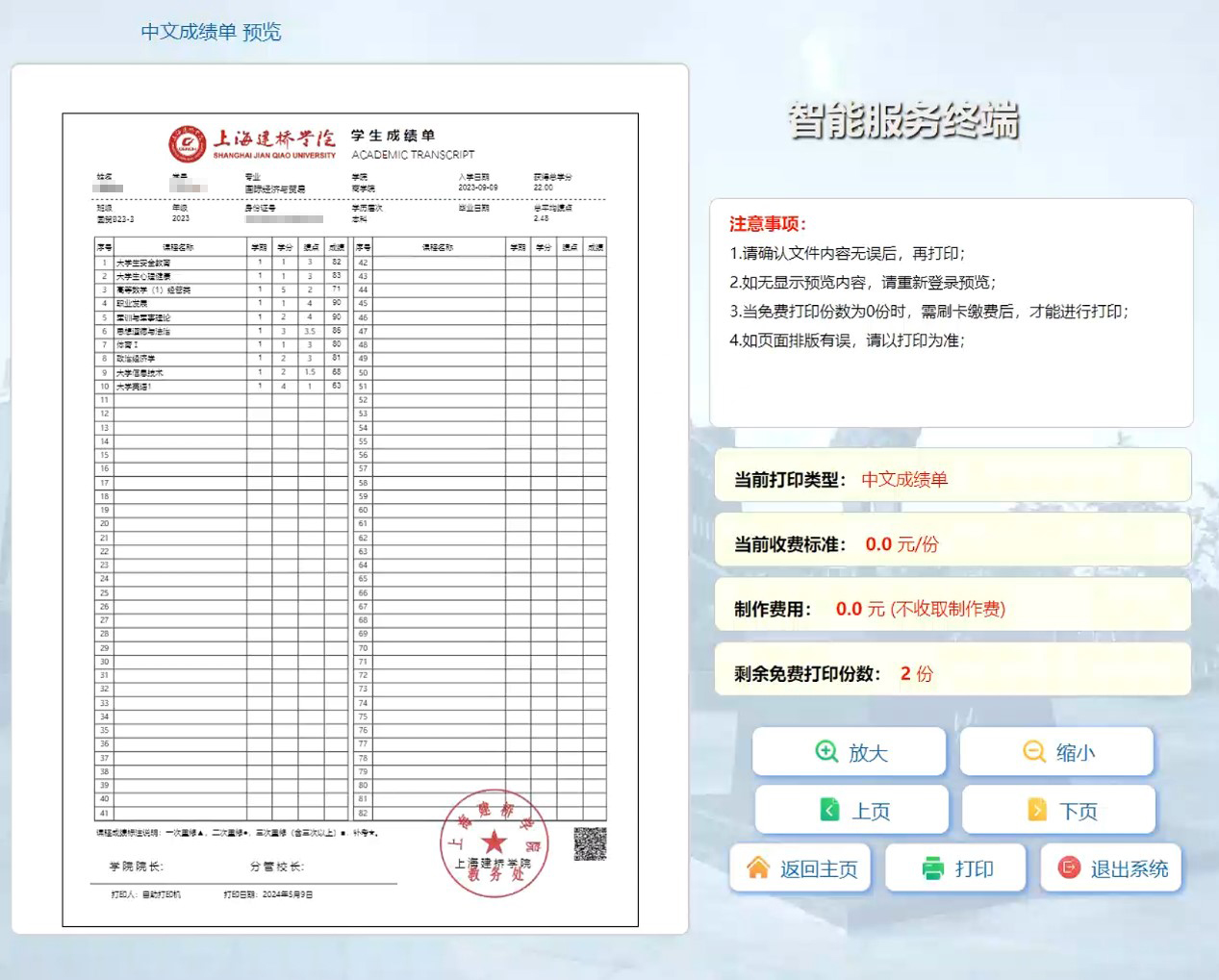 学生成绩单(英文) | 免费5份,超出5元/份 | 免费2份,超出5元/份 |