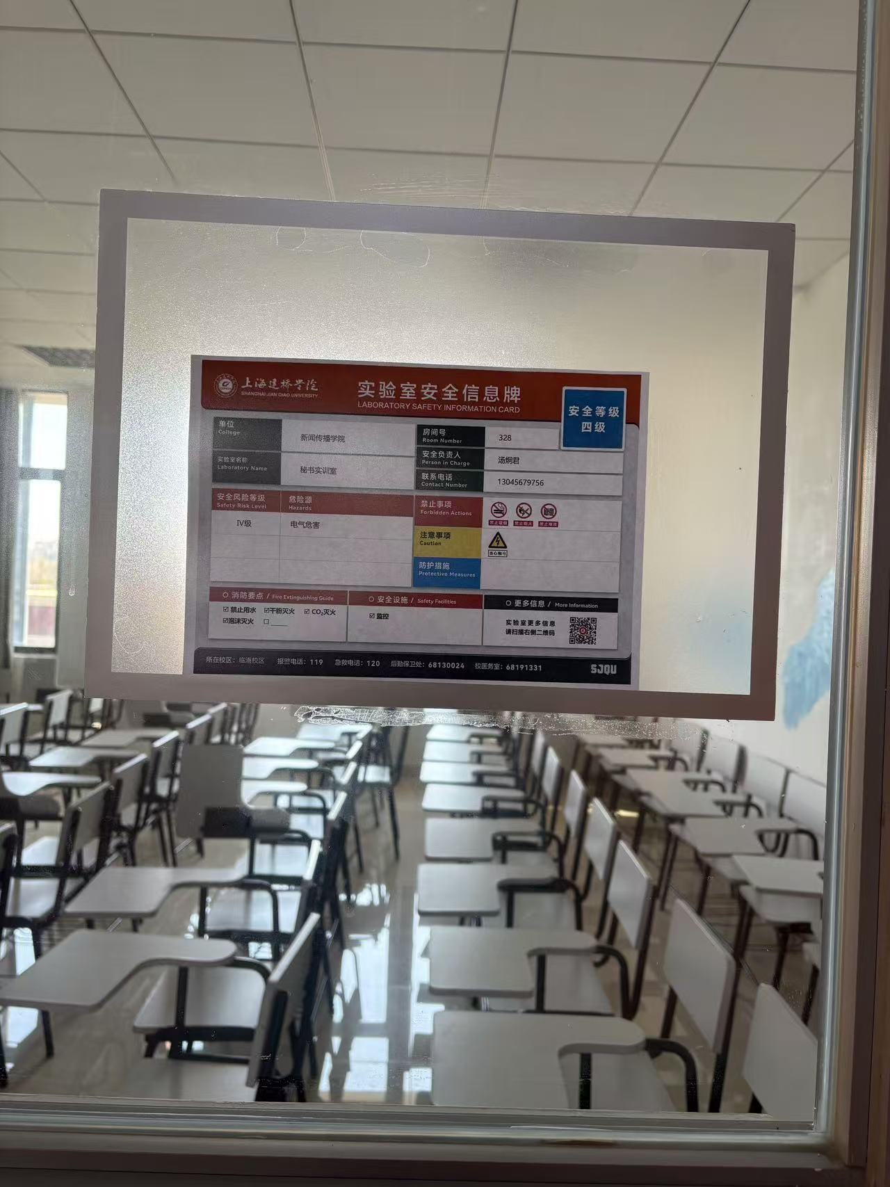 实验场所应张贴安全信息牌未及时更新,大小不匹配