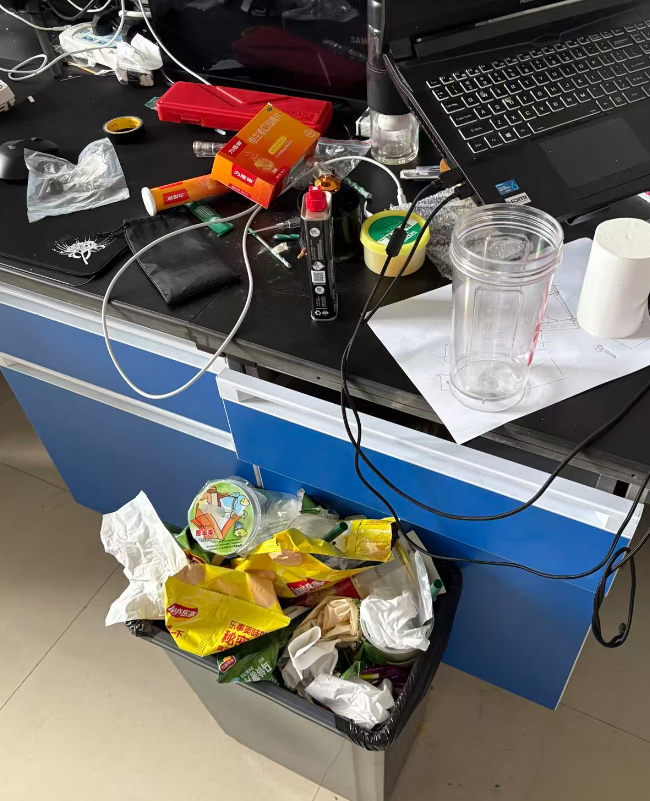 3、机电学院楼201房间卫生脏乱,在实验室吃东西卫生打扫不及时。发现行军床可能存在在实验室睡觉的情况。