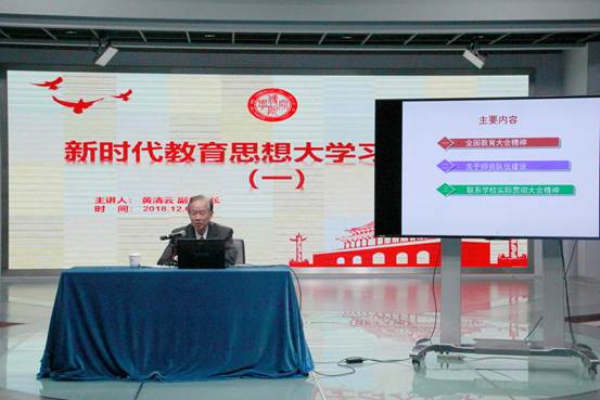 黄清云副董事长从学习全国教育大会精神出发,紧密联系我校的整体建设、师资队伍建设、专业建设等实际情况,为全院教职工做了一场别开生面的报告。他为与会人员解读了全国教育大会的主旨、主题、核心任务和根本要求,他认为中国教育从体制、投入、理念、目标到核心,由外到内、由低到高,逐渐走向成熟,并最终回归教育的根本任务。同时黄清云联系我校实际,希望教师们着眼于课堂教学,正确面对当下信息化技术变革、“以学生为中心”理念对传统教学的挑战,做好自己的本职工作。