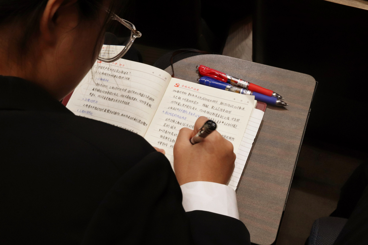 在老师的生动有力的演讲下,一个个光辉而伟大的身影跃然眼前——毛泽东、李大钊、陈独秀、陈延年、陈乔年......还有数不清的仁人志士为了救国救民的信念,为了共产主义信仰,拋头颅、洒热血,在革命的这条道路上前仆后继、勇往直前、永不放弃。正是因为有他们在用“铁”与血铸造了中国共产党,才将这一救民族于生死间的政党永远刻在每个人心中。