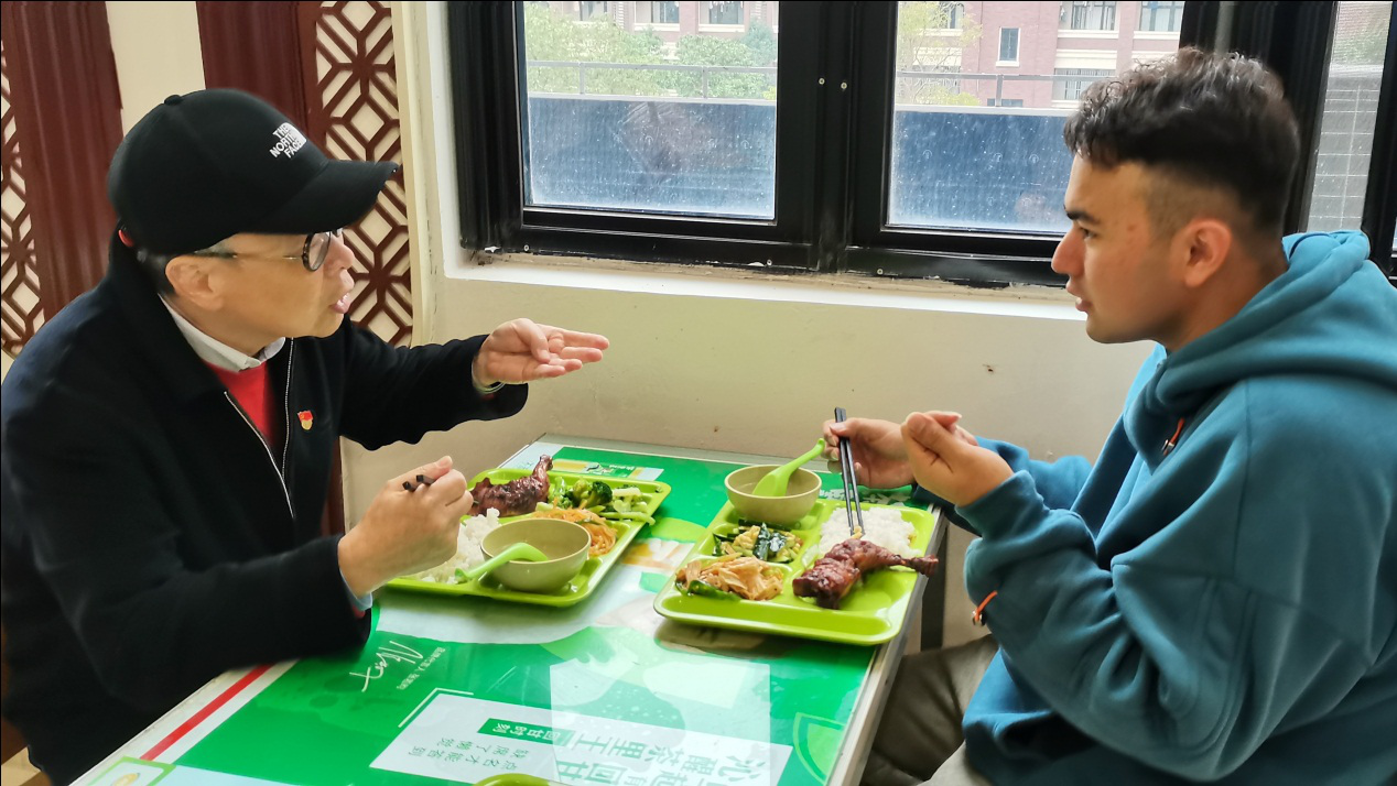 职业技术学院党员下寝室与学生结对做一家人活动至今进入第五年,院党委书记王加宁以身作则,积极帮扶,在与20级新生库得来特·买买提结对过程中,他走进学生寝室,与学生共进午餐;校园谈心,给予学生人文关爱;帮扶学习能力,增强学生自信。教师党员与学生结对做一家人活动密切了党员与群众的联系,增强了党组织在民族团结进步过程中的凝聚力和号召力。