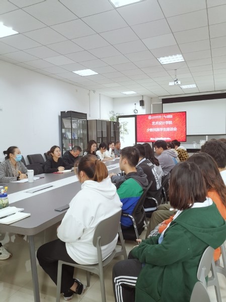 10月26日中午,艺术设计学院在223会议室召开少数民族学生座谈会。院党总支书记周智明、非毕业班辅导员及少数民族学生代表参加会议。会议由副书记王丽佳主持。