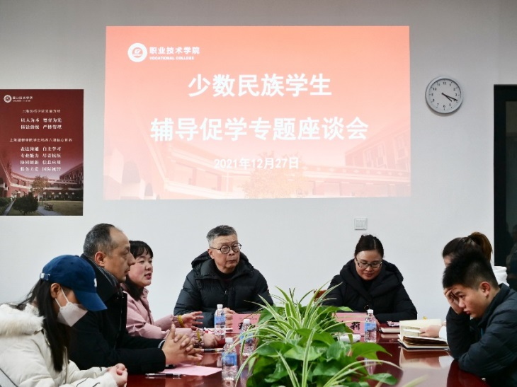 12月28日下午,职业技术学院组织召开“少数民族学生辅导促学”专题座谈会,校学生处副处长张莉,学院党委书记王加宁、副书记马冯莉,少数民族辅导员居麦尼亚孜·吾布力艾山以及近30名少数民族学生参加。