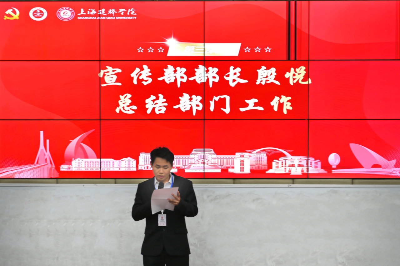 宣传部干事罗旭代表部长殷悦作发言。宣传部致力于校大学生党建中心的宣传工作,通过多种形式传播先进文化,为校园营造积极氛围。展望未来,宣传部会继续学习、拓宽宣传渠道、创新宣传内容和形式并加强与其他组织合作,以更加饱满的热情、更加务实的作风,推动宣传部的工作再上新台阶。最后,欢迎新干事们的加入,希望他们在校大学生党建中心可以发现自己无限的可能。让我们共同努力,不辜负大家的期望和重托,为校大学生党建中心贡献自己的力量。