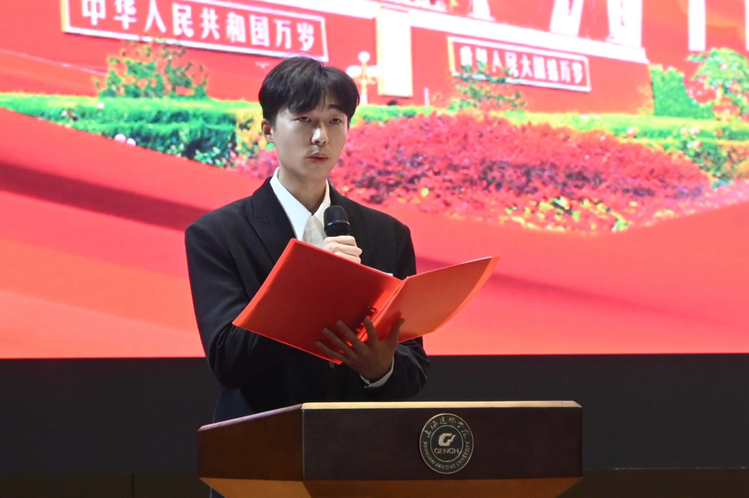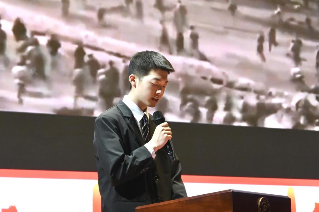 “青年仍在接续奋斗,我们是国之栋梁,拥有无限的潜力。作为上海建桥学院的学子,我们应当时刻牢记感恩、回报、爱心、责任的八字校训,勇当‘时代青年’,勇担‘时代重任’,在实现中华民族伟大复兴中国梦的生动实践中放飞青春梦想。青春是崭新篇章的书写者,是家国梦想的铸造者,是现在正奋力前进的你我,是一棒又一棒的薪火相传。”