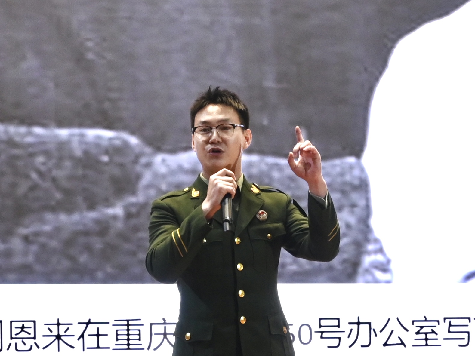 “我始终坚信我们是一个集体是一个组织,我可以无条件的把后背交给战友,团结就是力量,团结让我从这一刻起深深烙印在心上,作为青年团体,应怀揣赤子之心,以尘雾之微补益山海,以萤烛末光增辉岁月。我们青年团体,应播撒下为人民服务的种子,用意志去浸润,用行动去浇灌,以坚持为给养,矢志奋斗,谱写新时代绚丽华章。”
