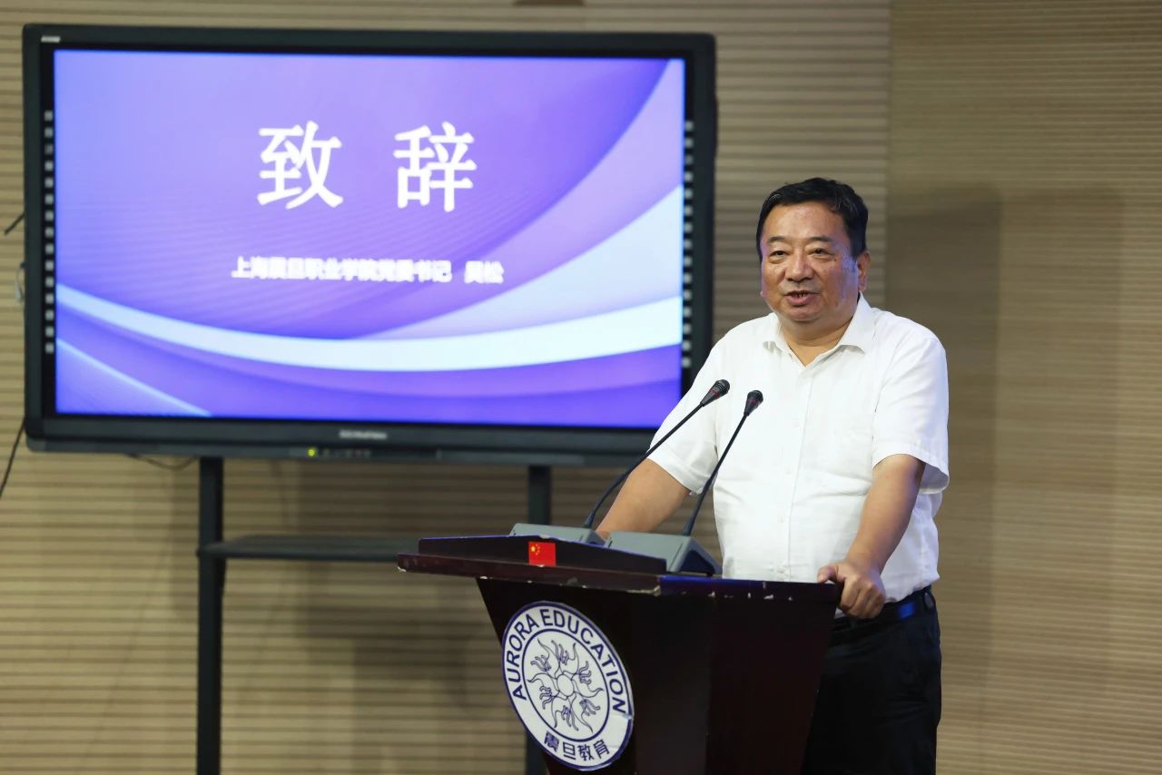 上海震旦职业学院党委书记吴松教授致欢迎辞。吴书记对各位嘉宾的到来表示热烈欢迎,对大赛的成功举办表示衷心祝贺,并高度评价了参赛学生的努力和才华。