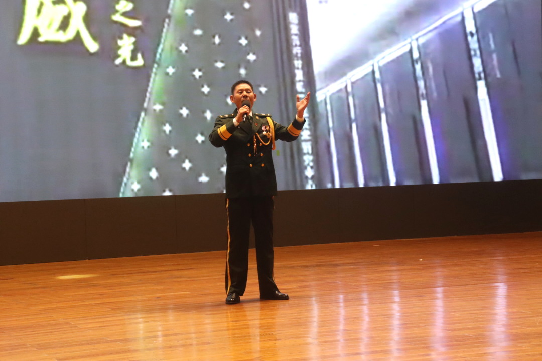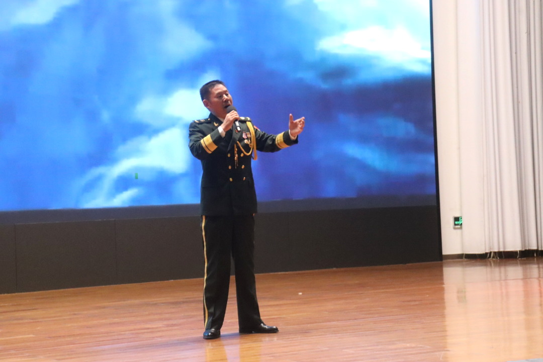 卞浩老师独唱《绿色军衣》。这首歌表达了对军队强大的向往和对祖国统一的坚定信念