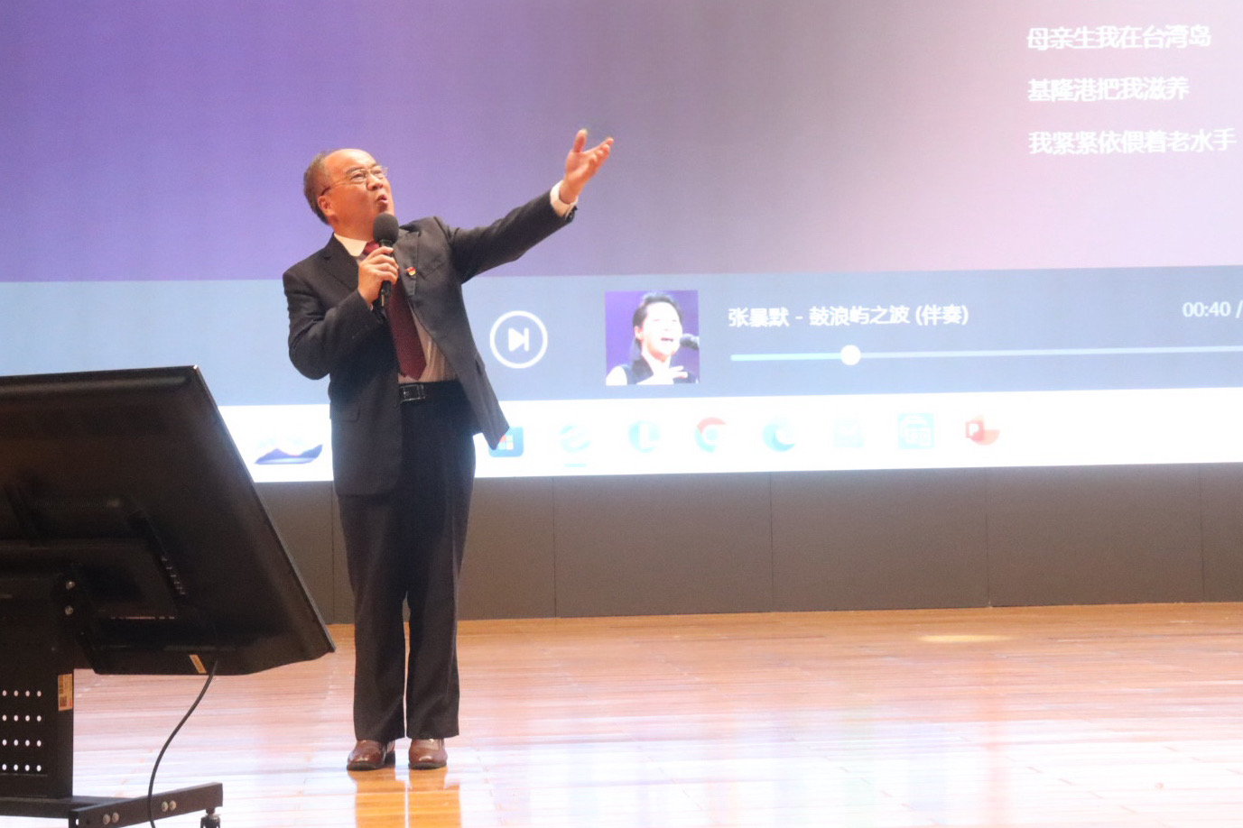 朱漪教授深情演唱了《鼓浪屿之波》,从他悠扬的歌声中传递了台湾同胞对家乡的深切思念