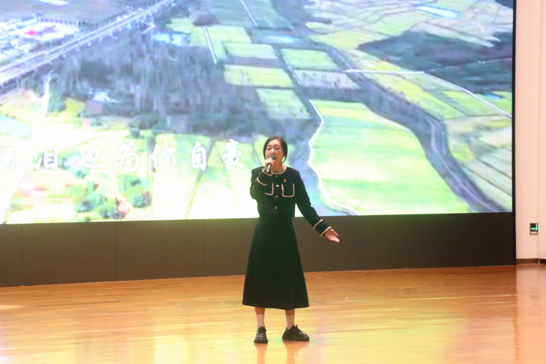 校关工委“五老”卞浩老师独唱《把一切献给党》。这首歌描述了一个和平年代的共产党员终身入党的心声,表达了对党忠诚不渝,对信仰矢志不移的坚定信念和满腔豪情而卞老师作为一名共产党员,更是接受党的指导培养、教育和引导,做到爱党信党,永远跟党走。这也是他终生不悔的追求。
