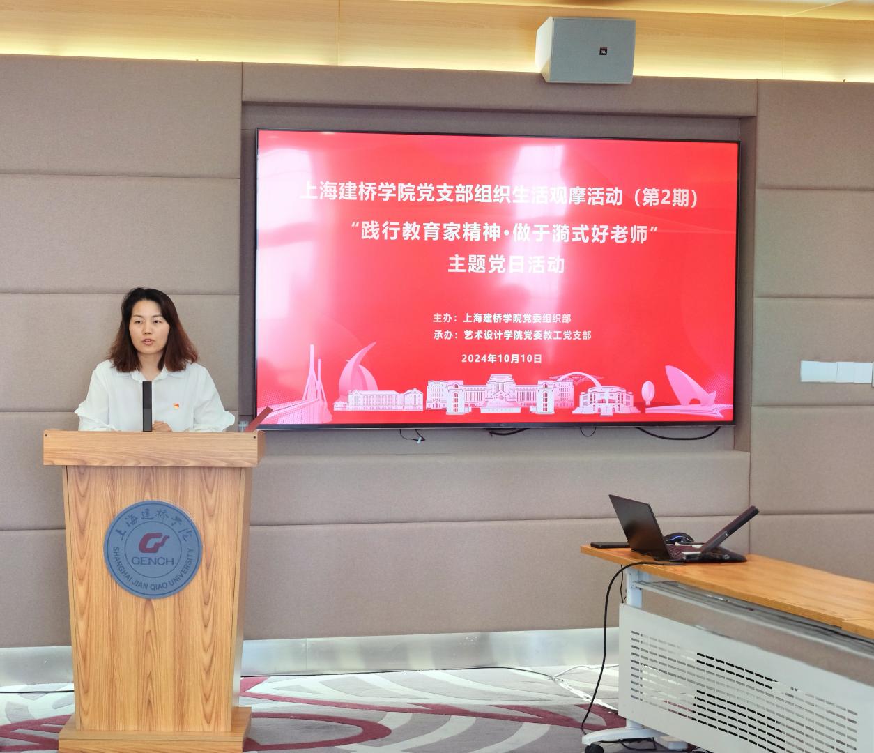 为贯彻落实习近平总书记关于加快建设教育强国、大力弘扬教育家精神的重要指示,激励我院教师以教育家精神为指引,以人民教育家于漪为榜样,爱岗敬业、潜心育人,艺术设计学院教工党支部于2024年10月10日,在图书馆M617会议室举办“践行教育家精神·做于漪式好老师”主题党日“观摩”活动。 出席本次主题党日活动的人员有校党委组织部副部长黄晓星、校党委组织部专职组织员陈静、组织员赵君、朱玲、艺术设计学院党委书记周智明、院长葛洪波、党委副书记王丽佳,艺术设计学院教工党支部全体党员、各二级学院组织委员、支部书记,活动由艺术设计学院教工党支部书记张慧慧主持。